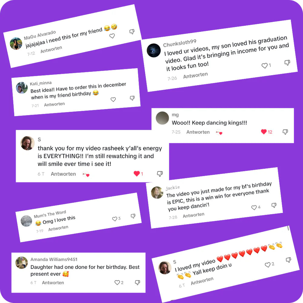 "Yeooo!!! These guys did a great job, creating a custom, funny and loving Valentine’s Day video for my wife. I appreciate the simplicity it was to place an order and it came out great, friends loved it, wife loved it especially so mission accomplished and it wasn’t expensive, and it felt great to donate to their cause!"